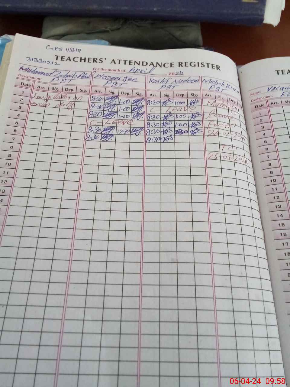 | 31**** | Mu**** Zo**** Af**** | PST | Regular | 0 | 0 | 0 | 0 | 0 | 0 | 0 | 0 | 0 | Exam Duty |