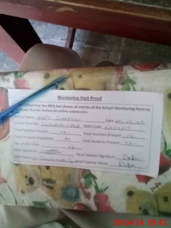 | Attendance Register | Head Teacher | MEA with School | Visit Proof |