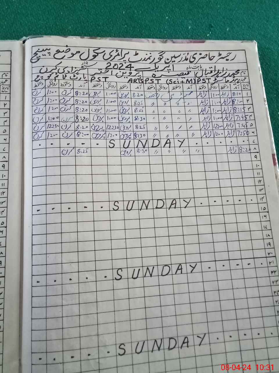 | CNIC | Full Name | Designation | R/C | Absence During Last Calender Month |