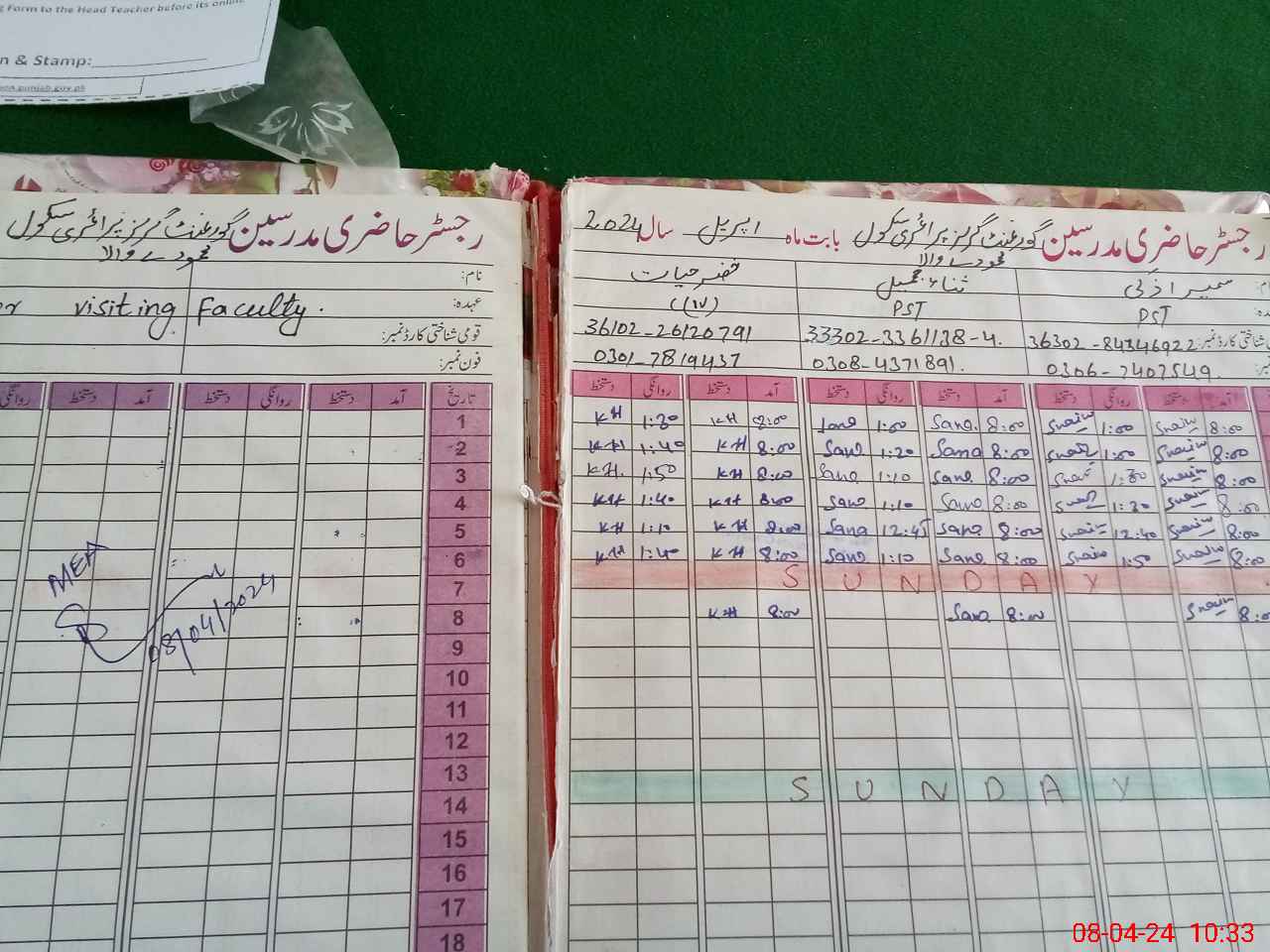 | Name: SU**** ZA**** Designation: (School Headmaster's/Headmistress's) PST Phone/Cell Number: 03**** |