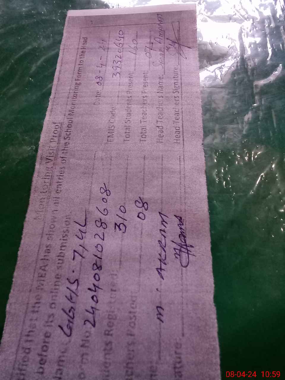 | Name: SA**** AM**** Designation: (School Headmaster's/Headmistress's) HEADMASTER Phone/Cell Number: 03**** |