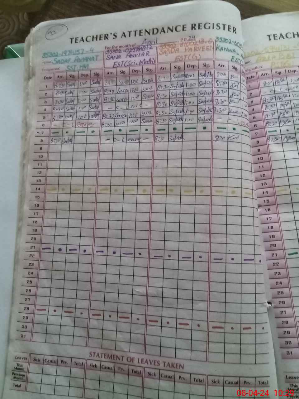 | Leave | Duty | Absent | Maternity | Medical | Ex- Pak |