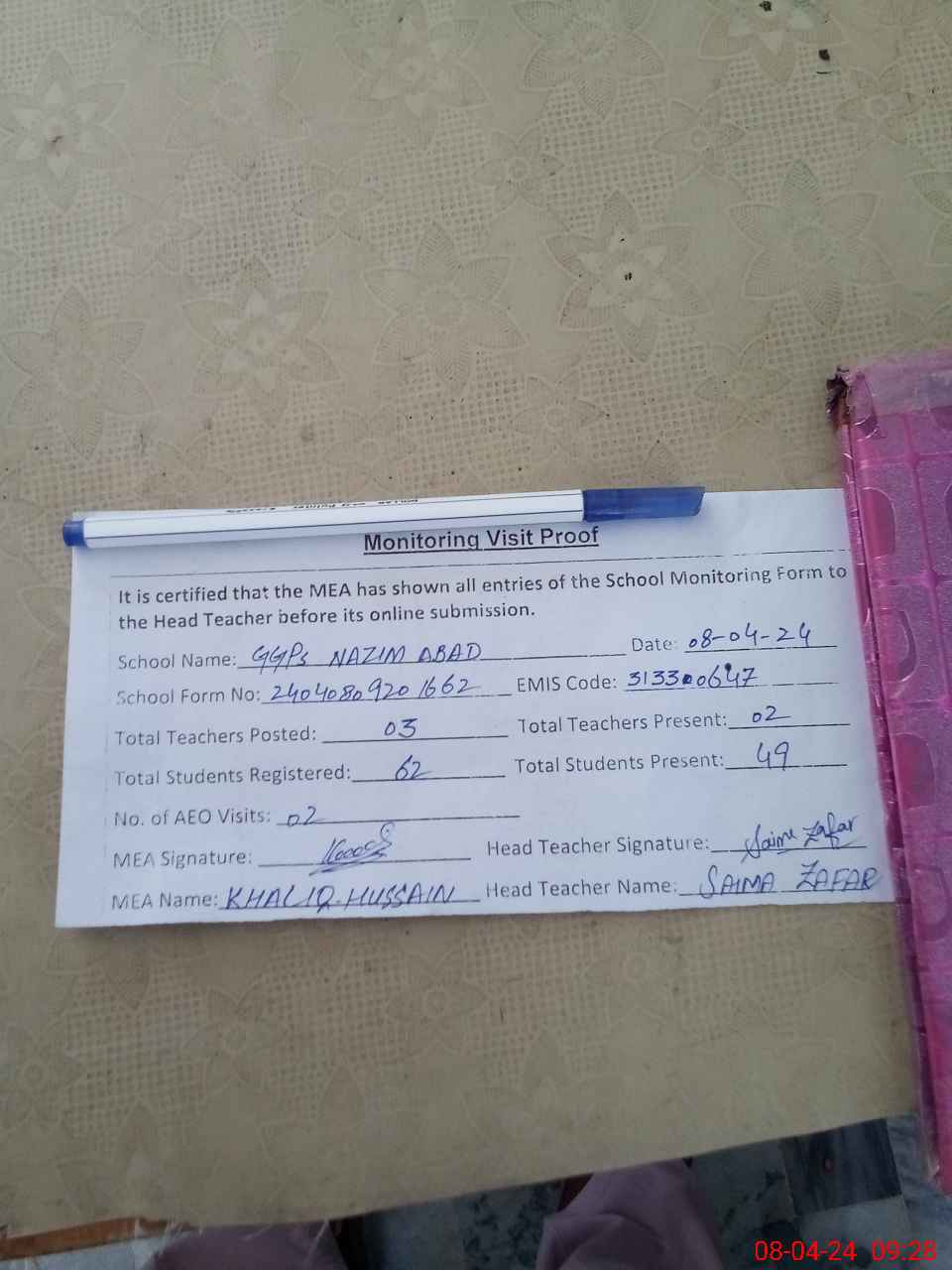 | EMIS Code: 31330647 | Name of School: GGPS NAZIM ABAD | |||