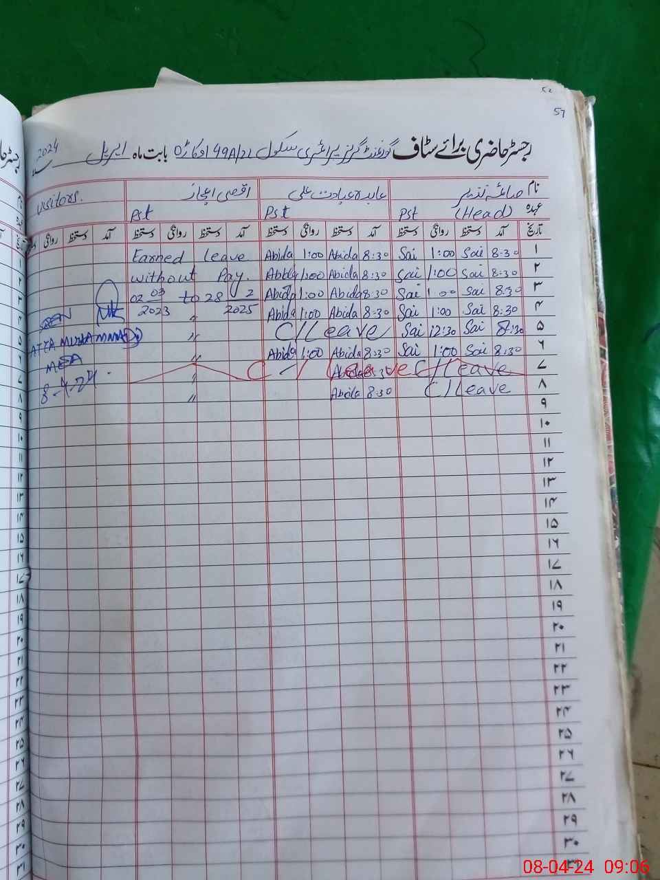 | Leave | Duty | Absent | Maternity | Medical | Ex- Pak |