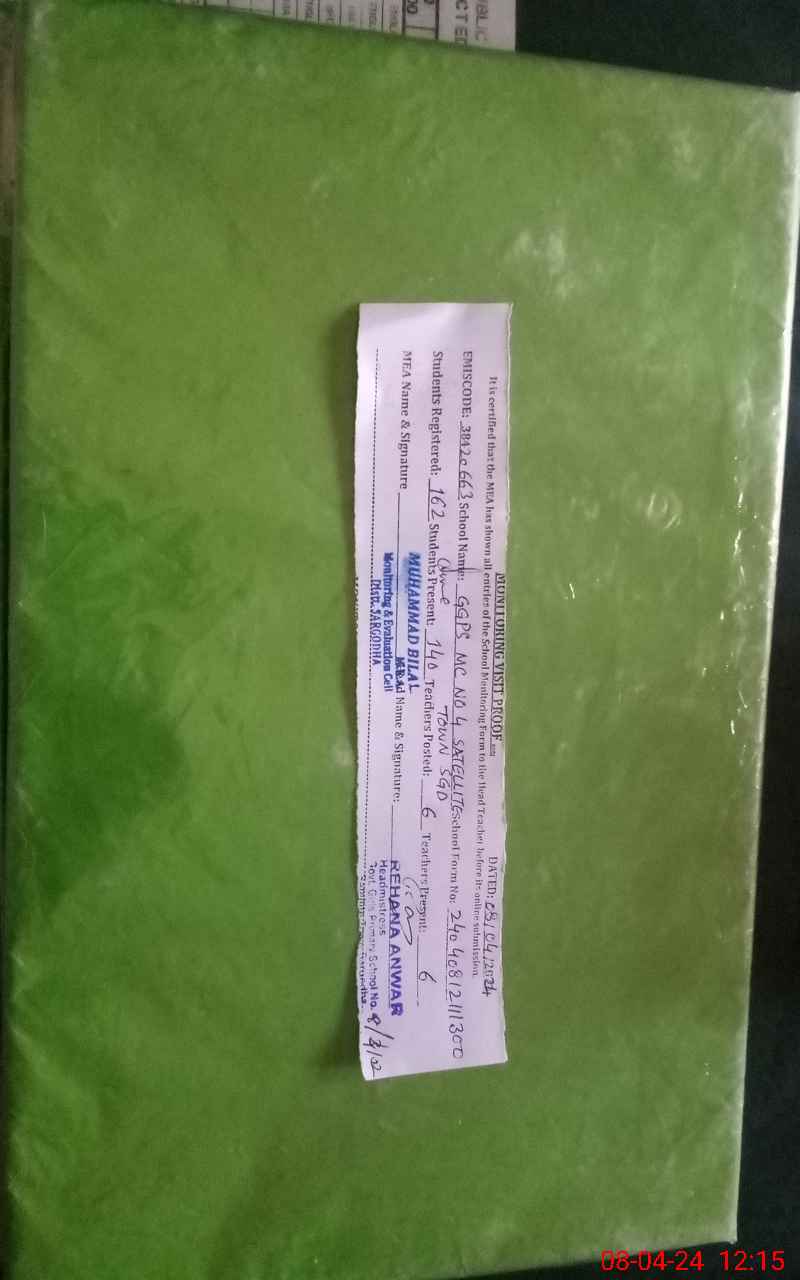 | EMIS Code: 38420663 | Name of School: GGPS MC NO.4 SATTELITE TOWN SARGODHA | |||