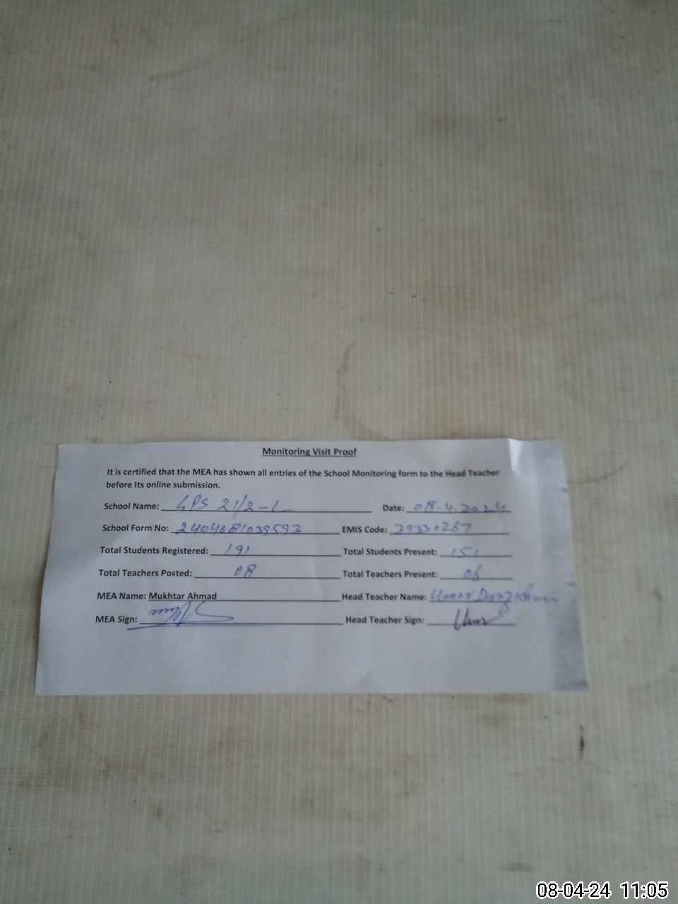 | EMIS Code: 39330267 | Name of School: GPS CHAK 21 2L | |||