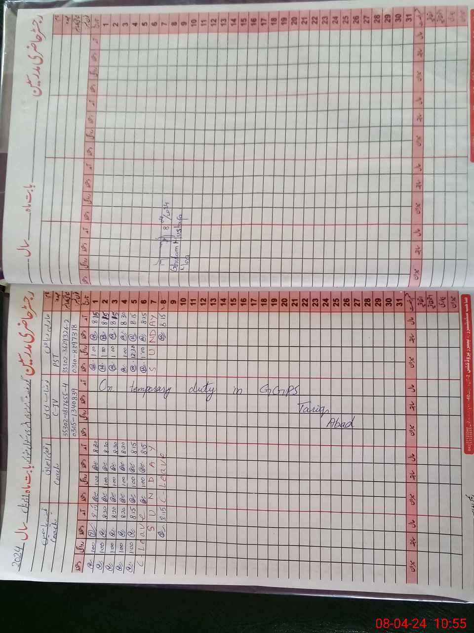 | CNIC | Full Name | Designation | R/C | Absence During Last Calender Month |