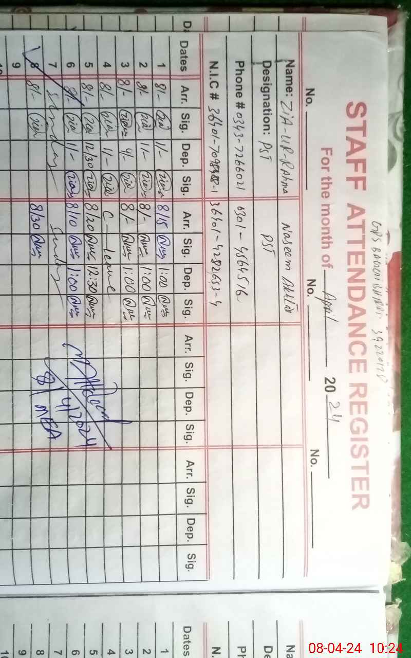 | Name: ZI**** URRE**** Designation: (School Headmaster's/Headmistress's) PST Phone/Cell Number: 03**** |