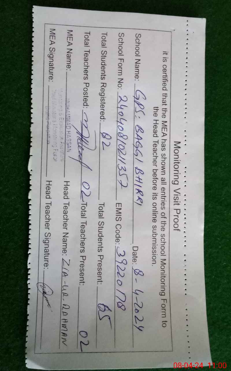 | EMIS Code: 39220178 | Name of School: GPS BAGGI BHIRRI P/O SHAFI ARIF WALA | |||