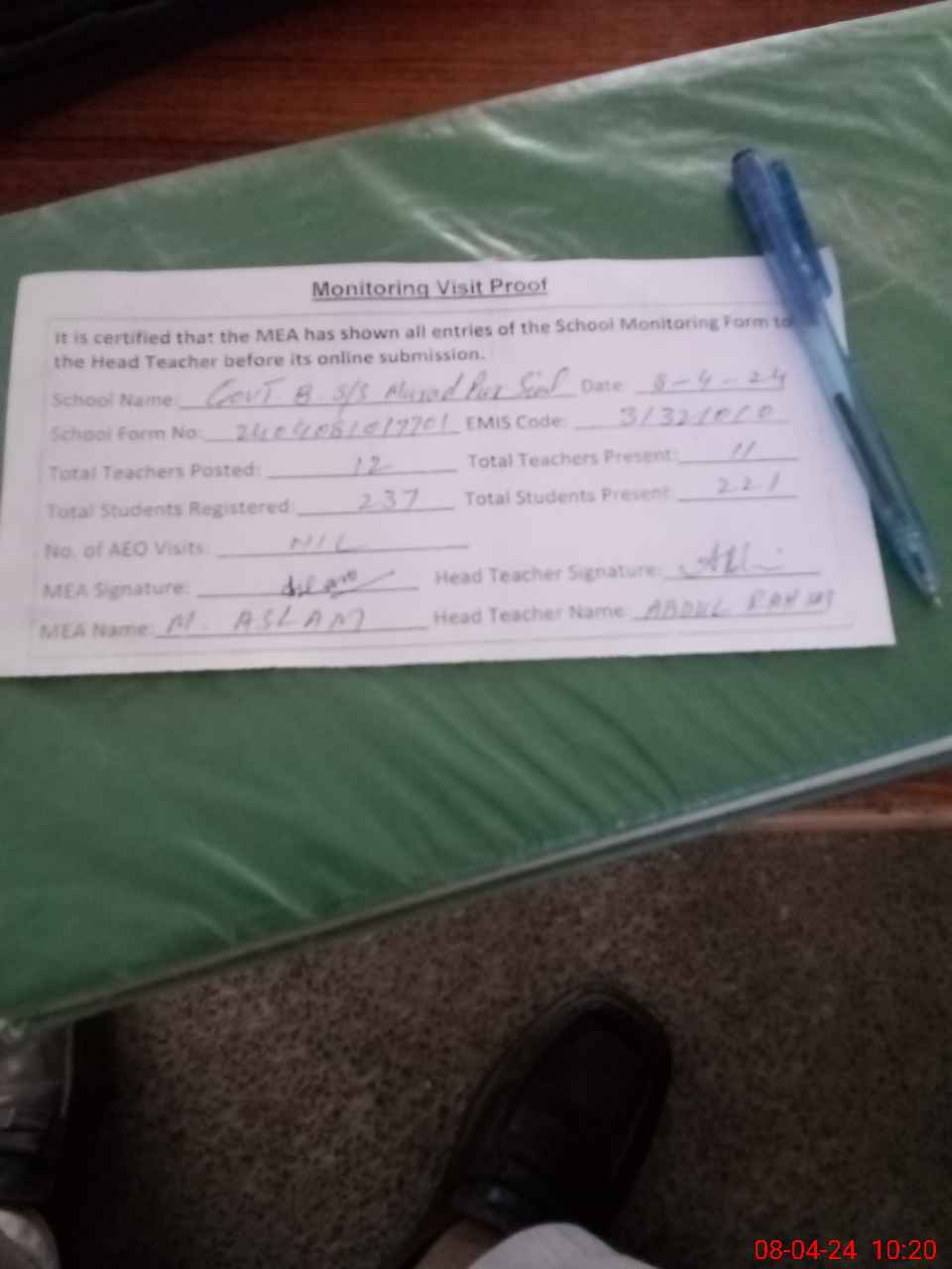 | EMIS Code: 31321010 | Name of School: GHS MURAD PUR SIAL | |||