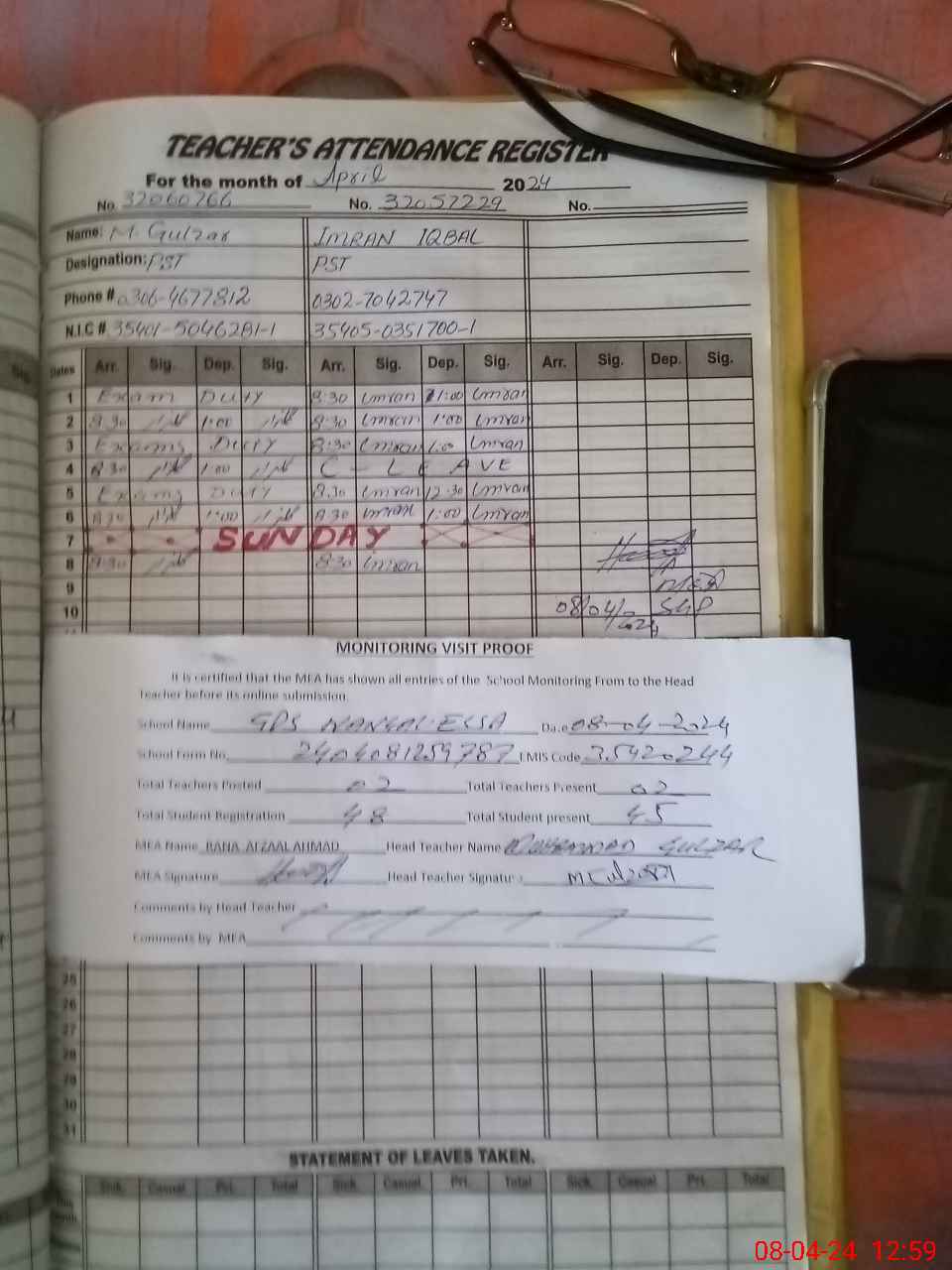 | Attendance Register | Head Teacher | MEA with School | Visit Proof |