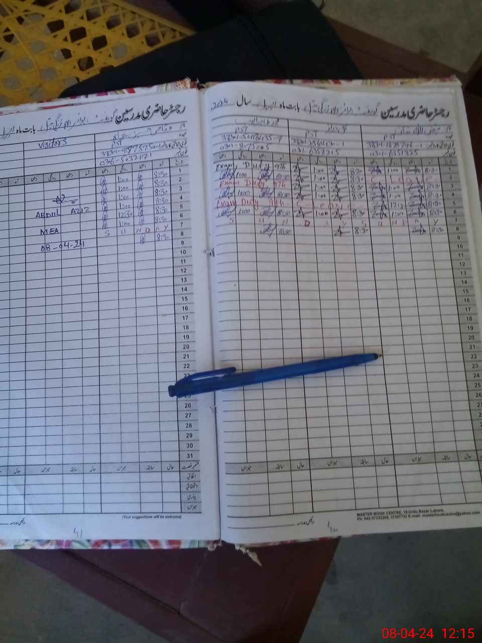 | CNIC | Full Name | Designation | R/C | Absence During Last Calender Month |