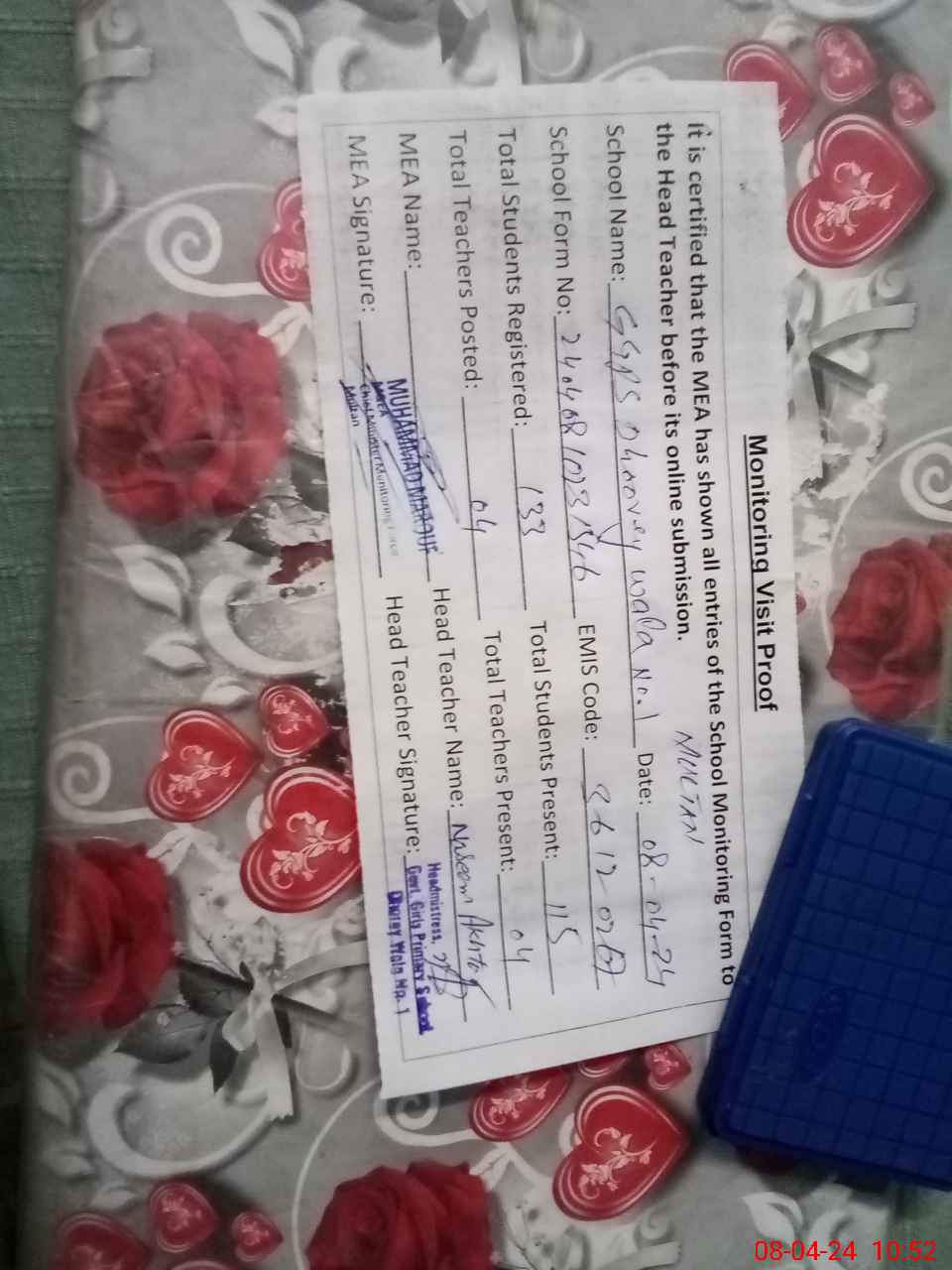 | EMIS Code: 36120267 | Name of School: GGPS DHORAY WALA NO.1 SHUJABAD | |||