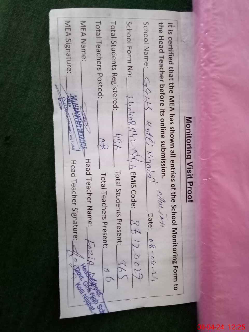 | EMIS Code: 36120027 | Name of School: GGHS KOTLI NAJABAT MULTAN | |||