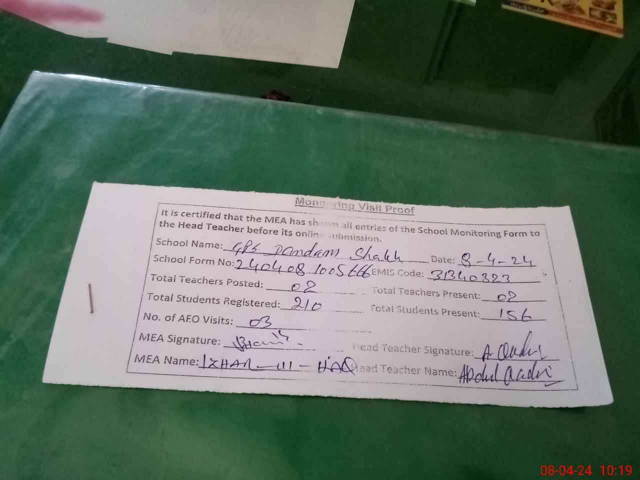 | EMIS Code: 31340323 | Name of School: GPS DANDAM SHAKA TEH SADIQA ABAD | |||
