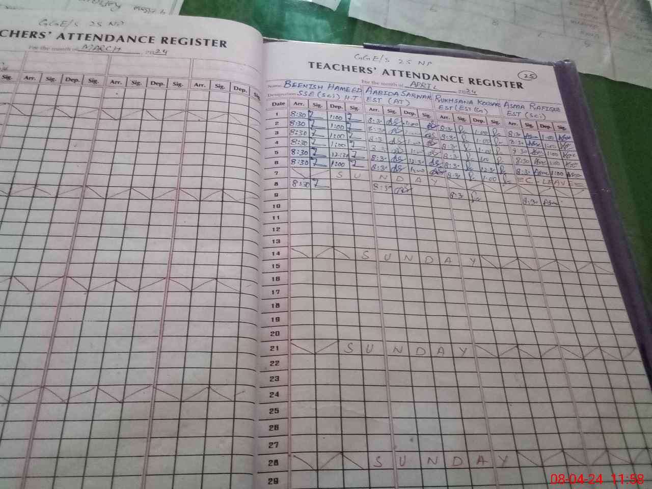 | Monitoring Date: 08-04-2024 | Start Time: 08-04-2024 11:25 AM | End Time: 08-04-2024 12:04 PM | Name of MEA: Mu**** Iz**** UlHa**** | |