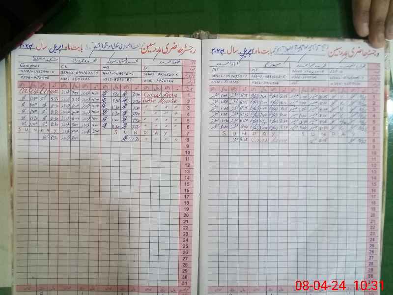 | CNIC | Full Name | Designation | R/C | Absence During Last Calender Month |