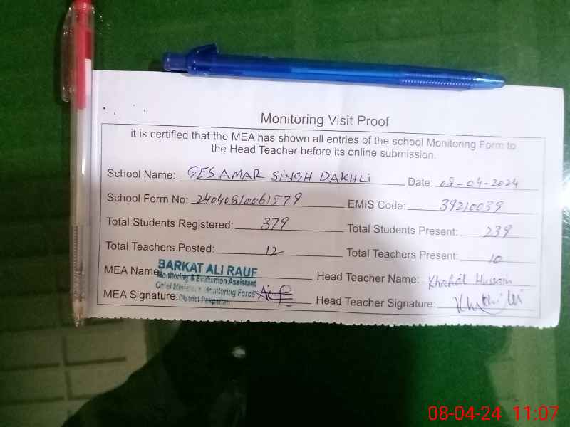 | EMIS Code: 39210039 | Name of School: GES AMAR SINGH DAKHLI SOCHAN | |||