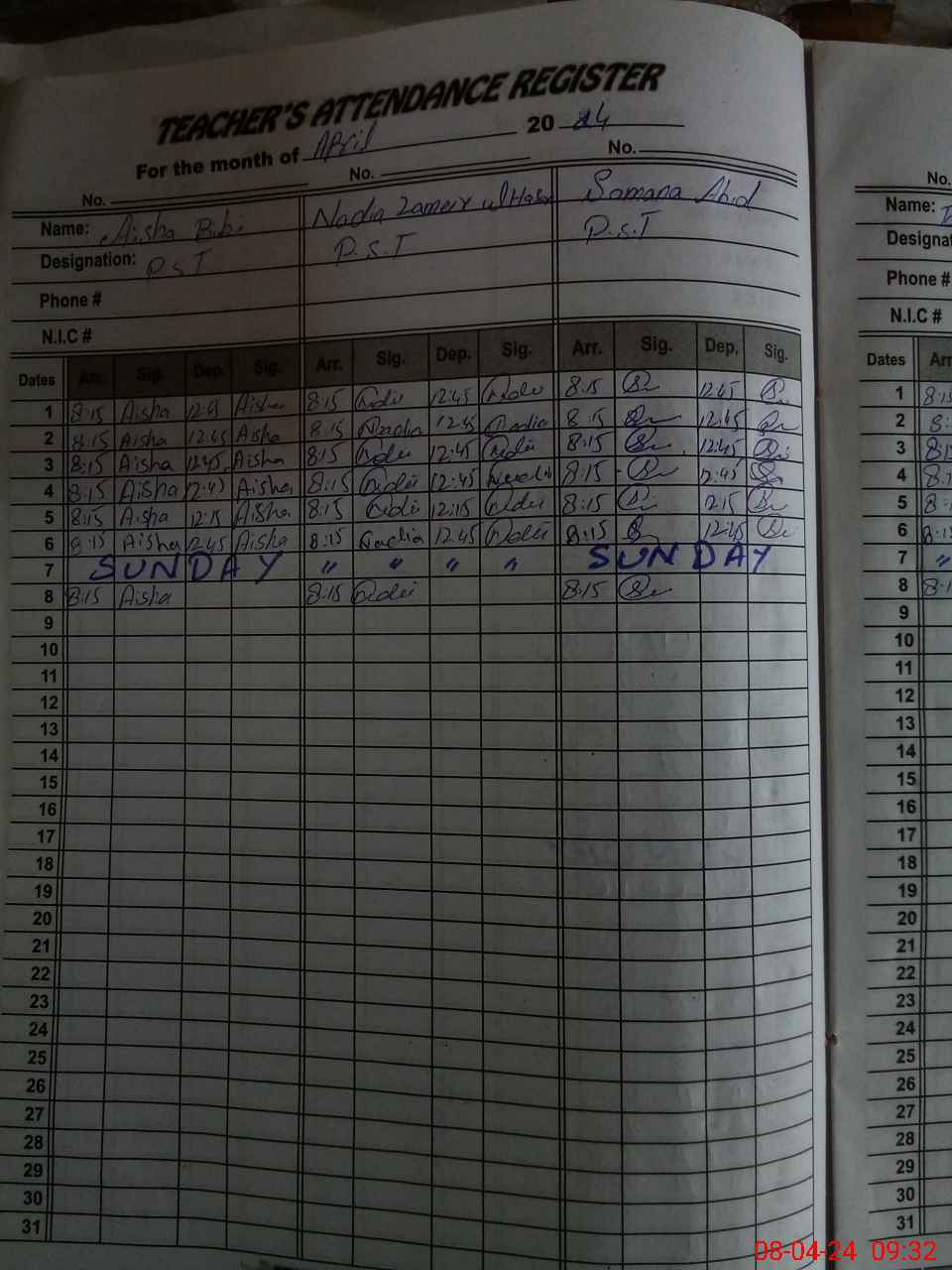 | Name: Ai**** Bi**** Designation: (School Headmaster's/Headmistress's) PST Phone/Cell Number: 03**** |