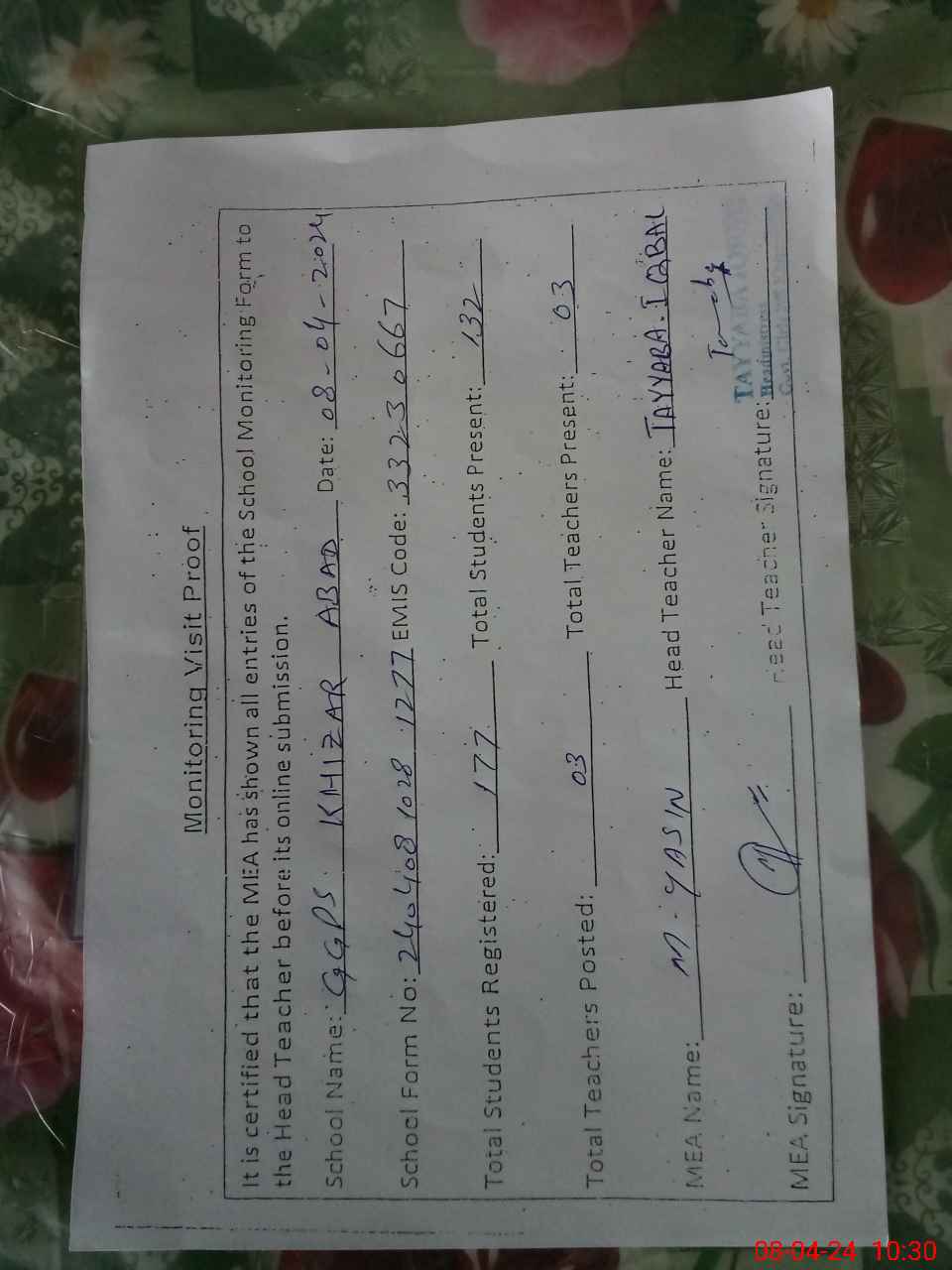 | EMIS Code: 33230667 | Name of School: GGPS KHIZAR ABAD | |||