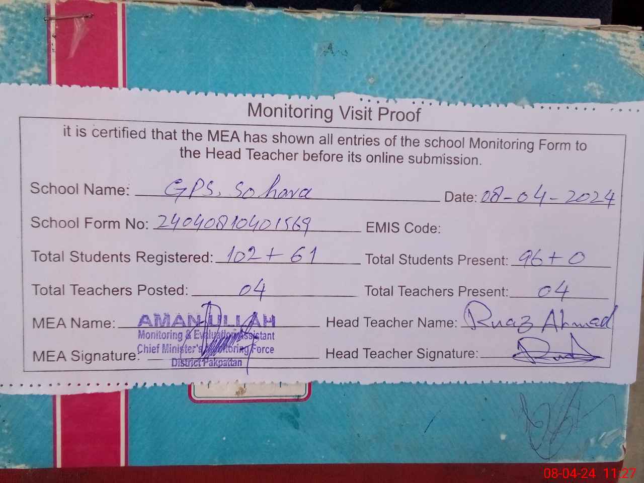 | EMIS Code: 39210185 | Name of School: GPS SOHARA | |||