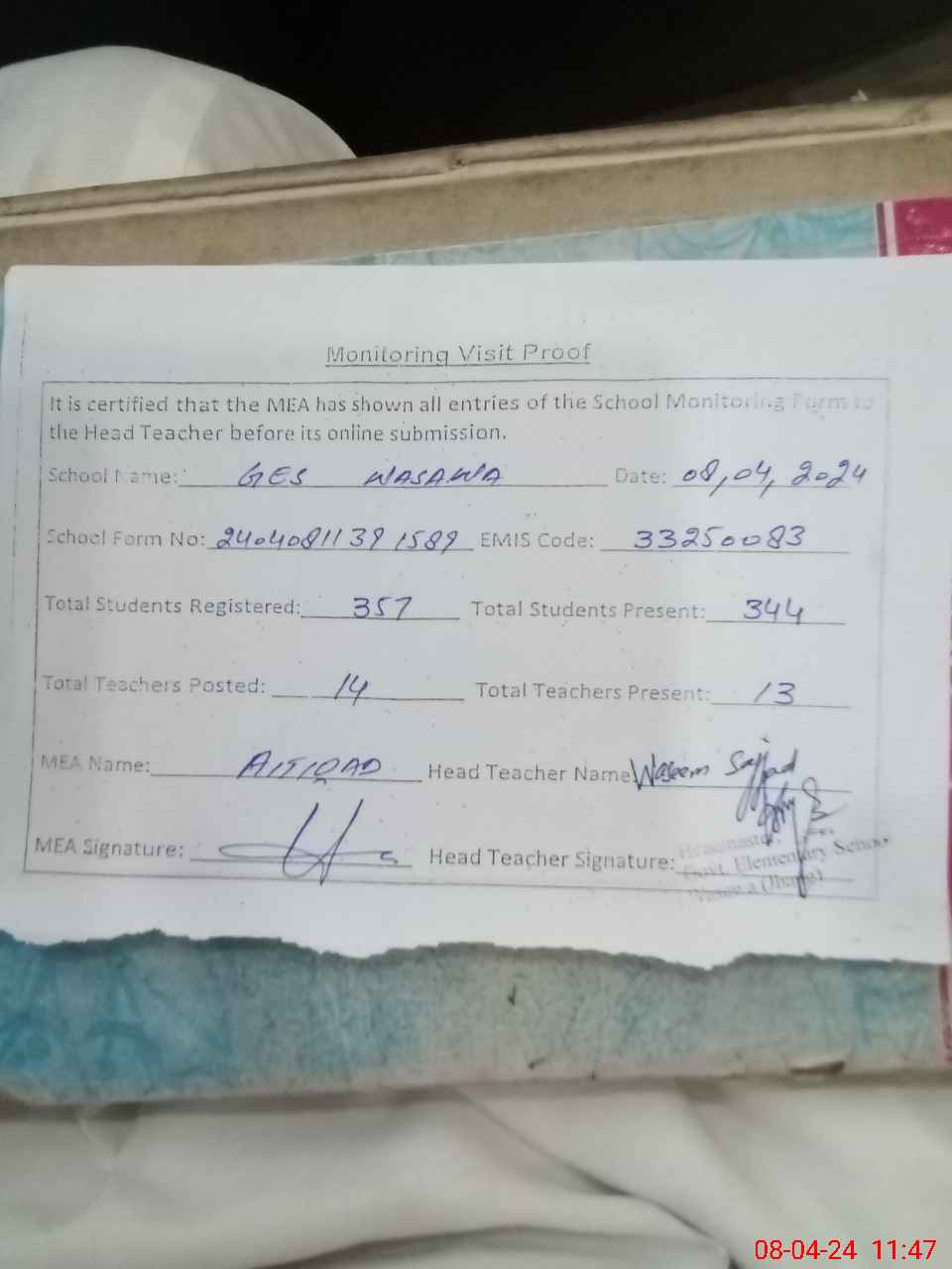 | EMIS Code: 33250083 | Name of School: GES WASAWA | |||