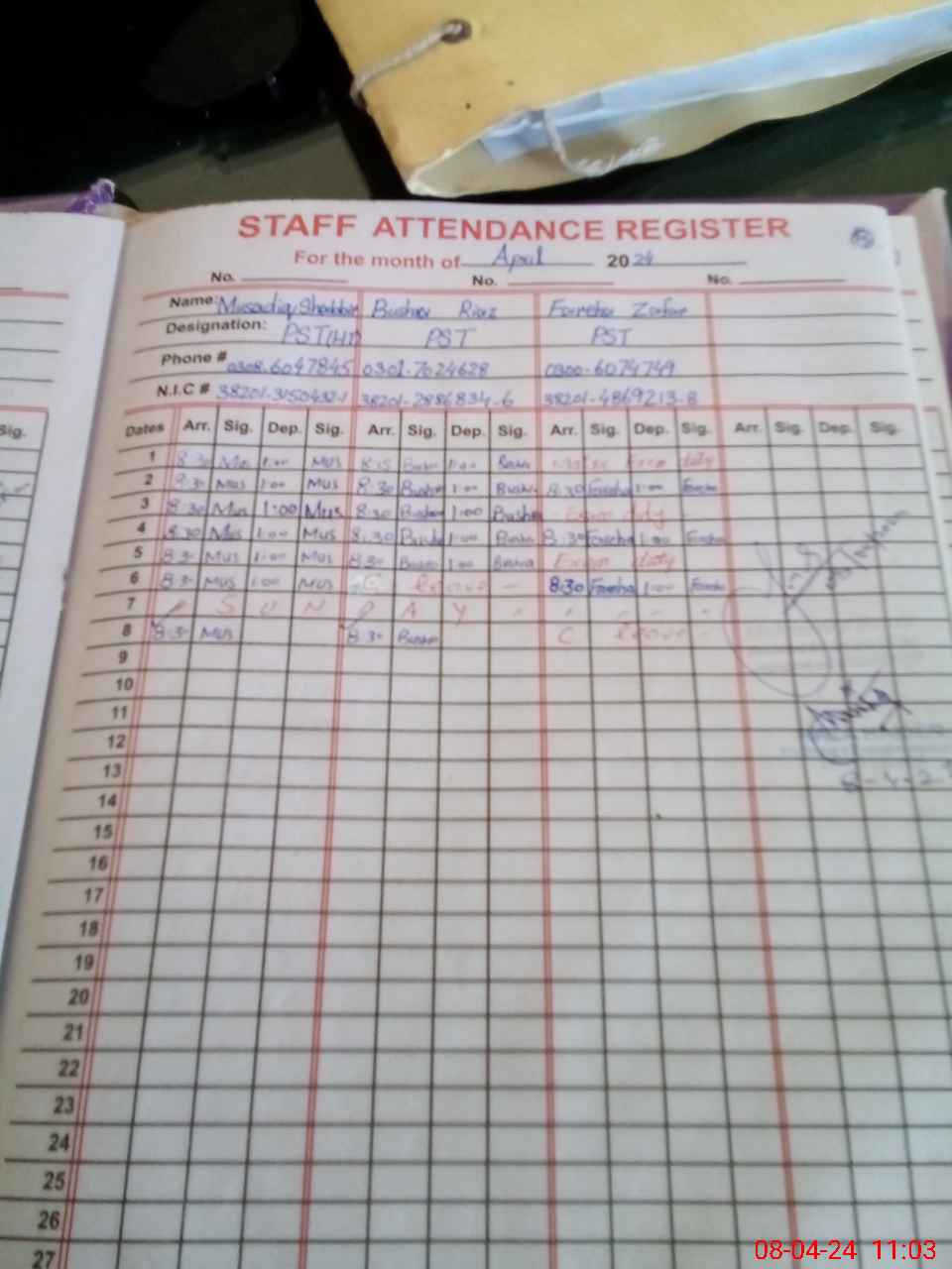 | Name: Mu**** Sh**** Designation: (School Headmaster's/Headmistress's) PST Phone/Cell Number: 03**** |