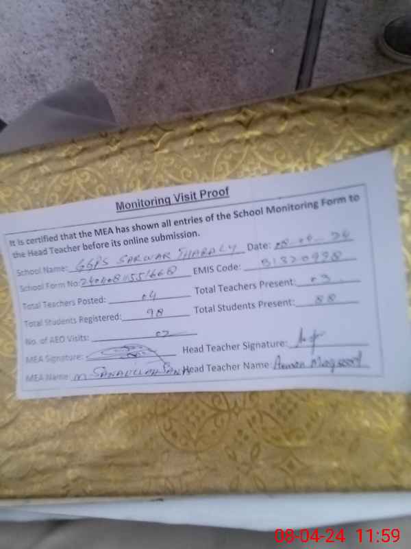 | EMIS Code: 31320998 | Name of School: GGPS GHULAM SARWAR TARHALI | |||