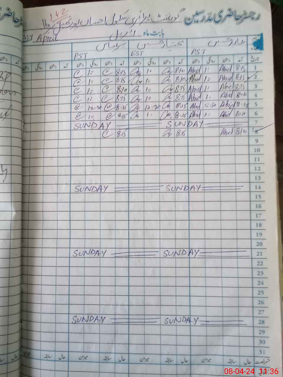 | CNIC | Full Name | Designation | R/C | Absence During Last Calender Month |