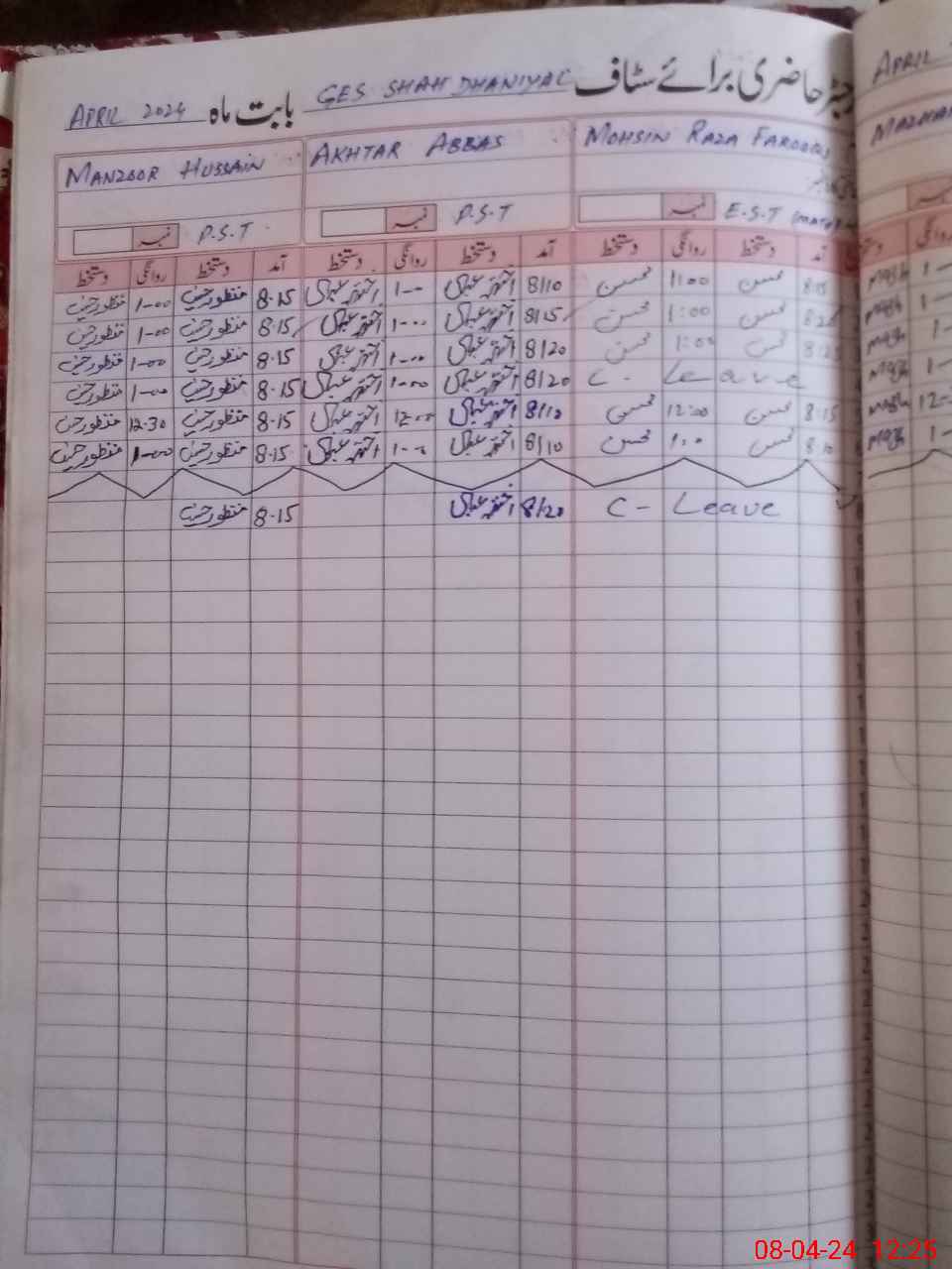 | CNIC | Full Name | Designation | R/C | Absence During Last Calender Month |