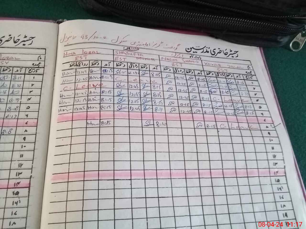 | CNIC | Full Name | Designation | R/C | Absence During Last Calender Month |