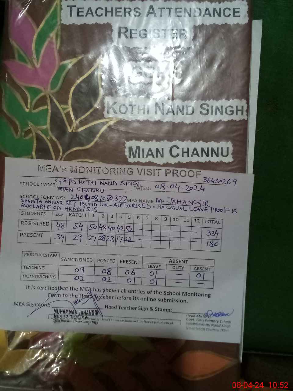 | EMIS Code: 36430269 | Name of School: GGPS KOTHI NAND SINGH, MIAN CHANNU | |||