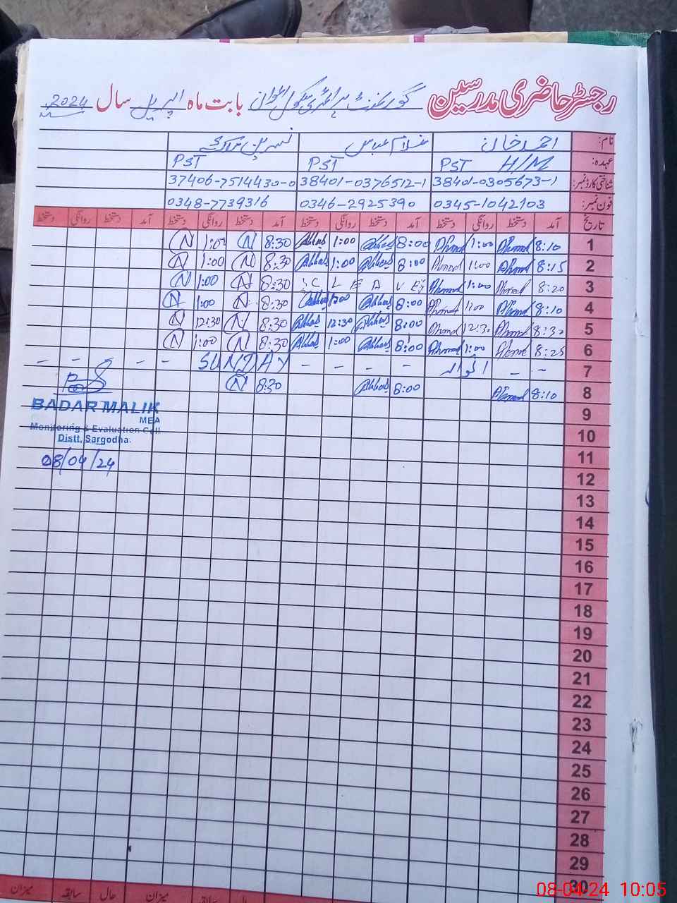 | Name: Um**** Ya**** Designation: (School Headmaster's/Headmistress's) PST Phone/Cell Number: 03**** |