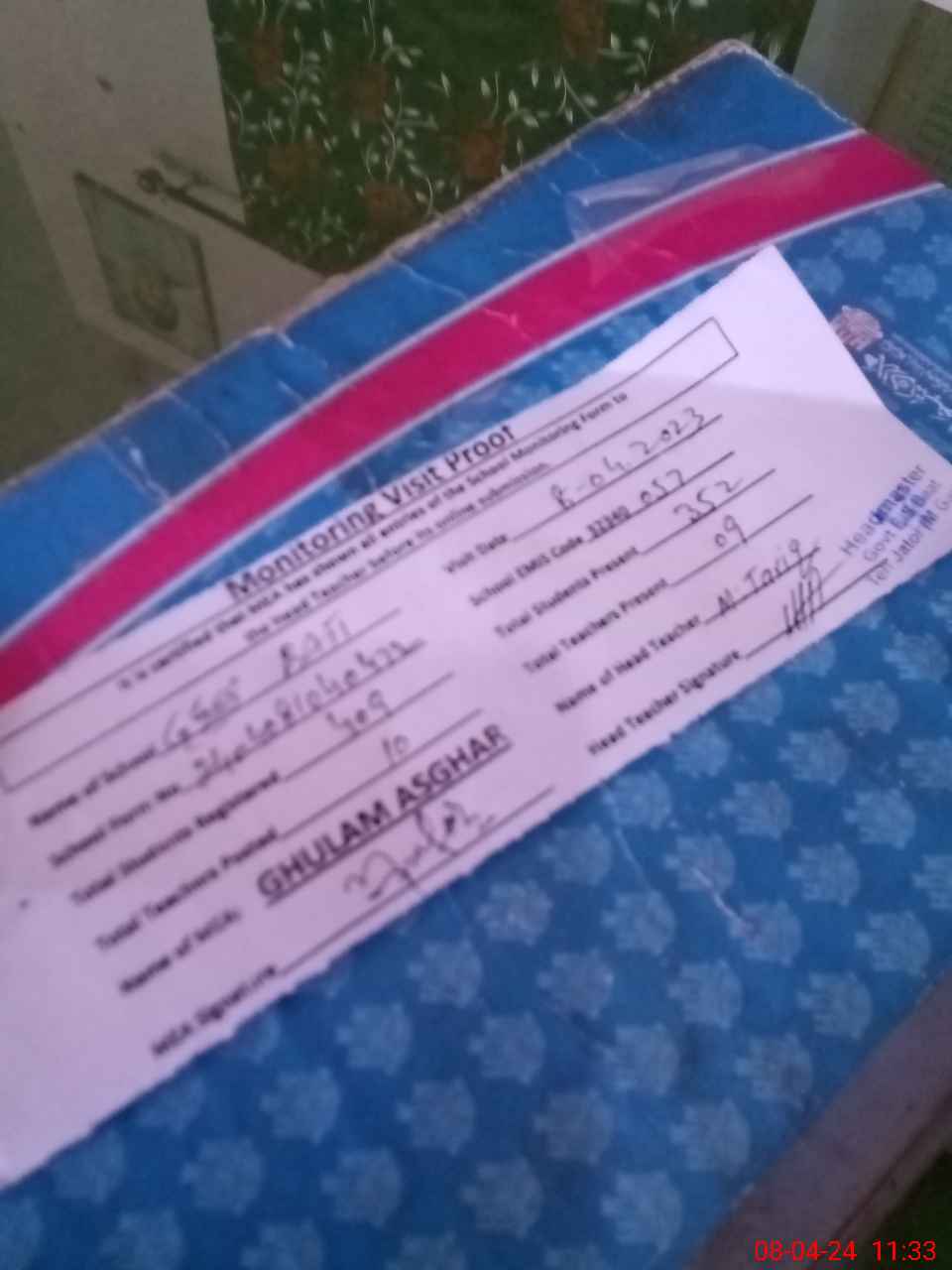 | Attendance Register | Head Teacher | MEA with School | Visit Proof |