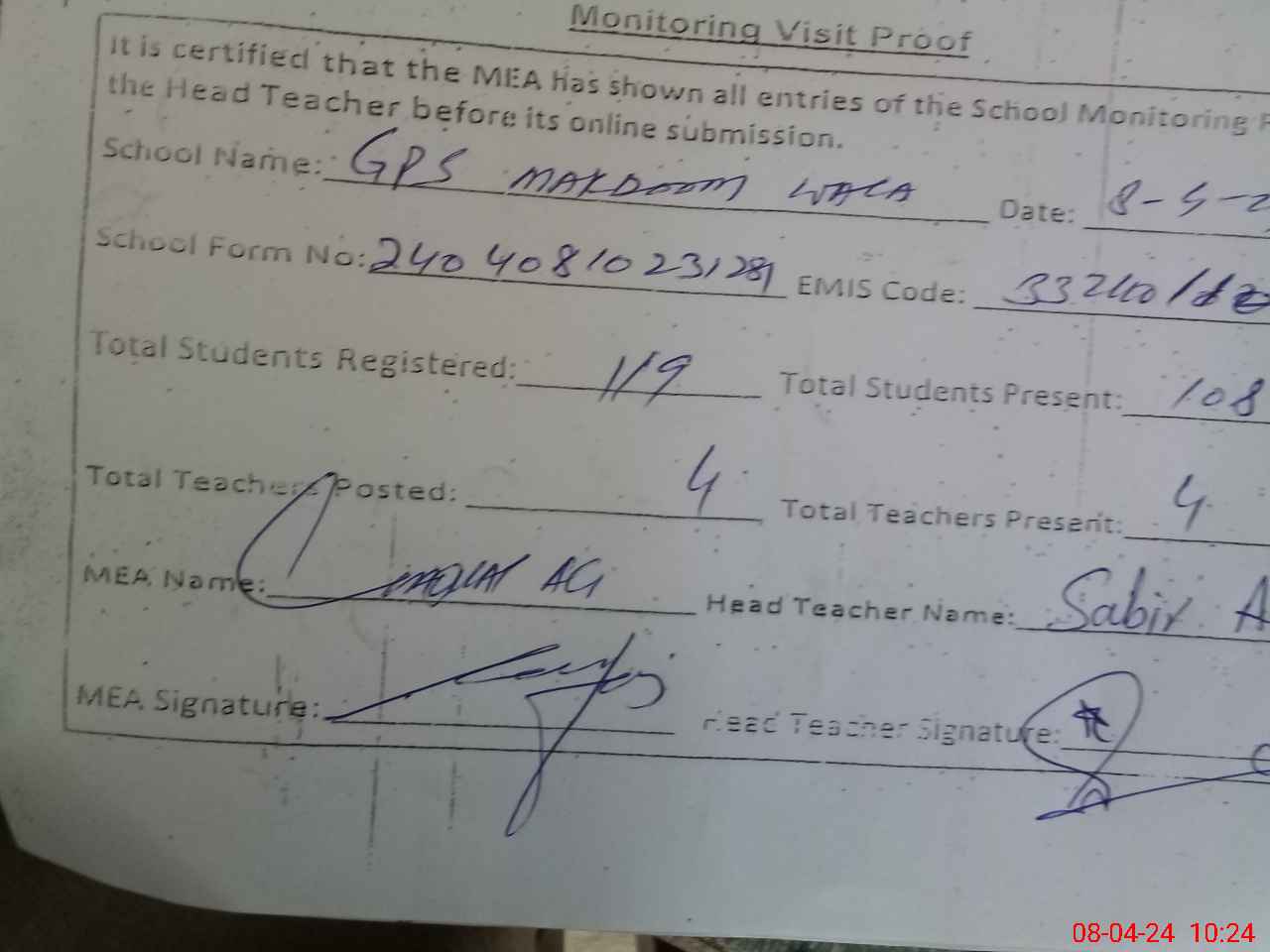 | EMIS Code: 33240110 | Name of School: GPS MAKHDOM WALA | |||