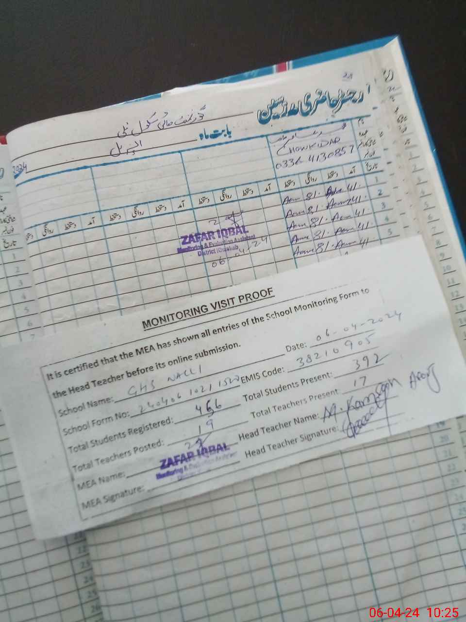 | Attendance Register | Head Teacher | MEA with School | Visit Proof |