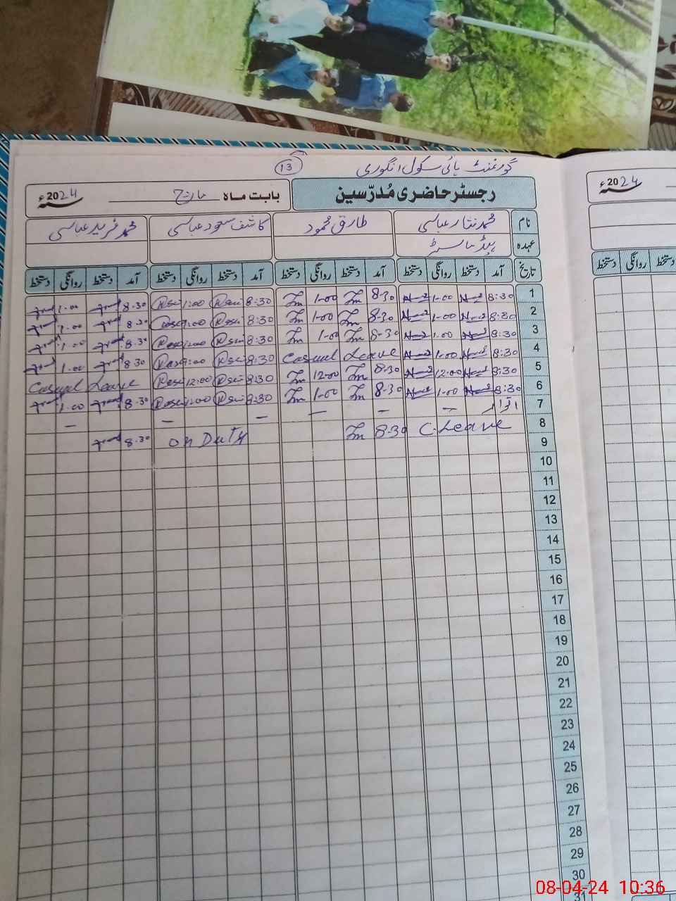 | CNIC | Full Name | Designation | R/C | Absence During Last Calender Month |