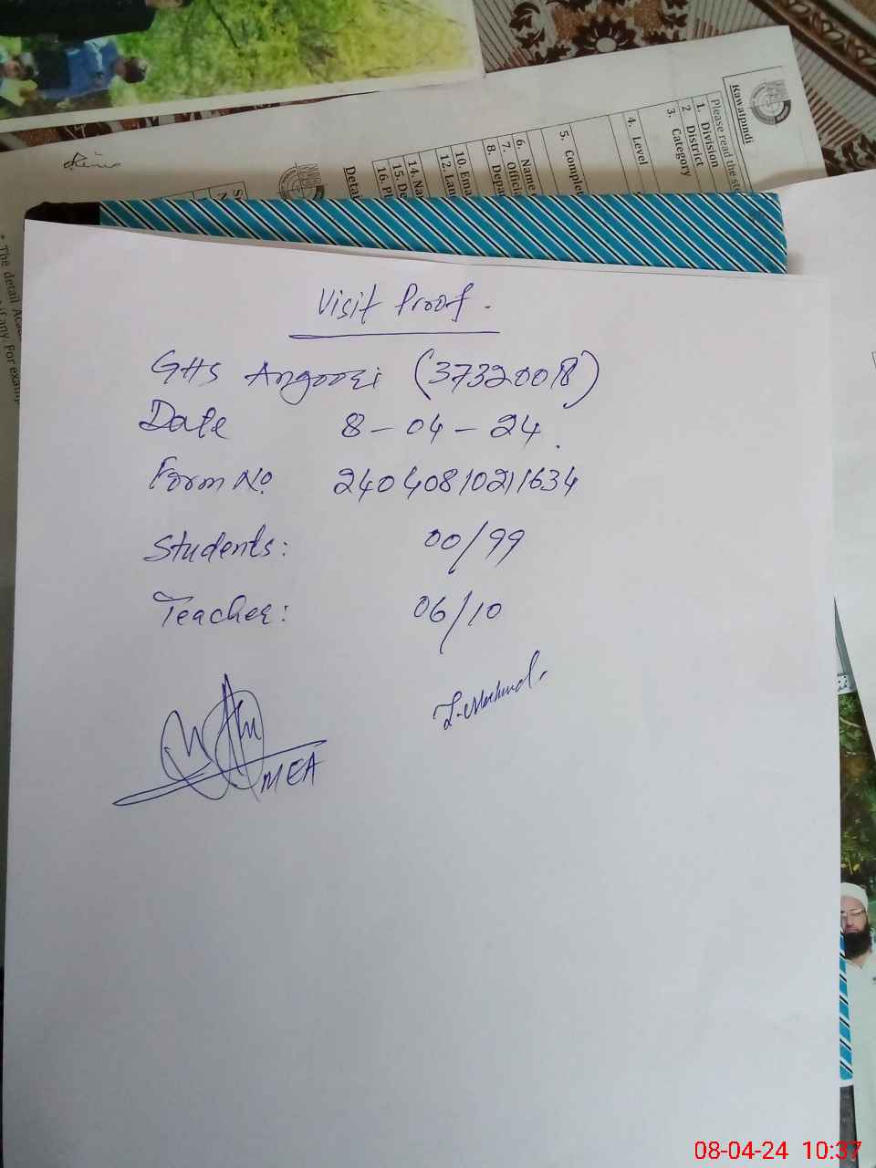 | Attendance Register | Head Teacher | MEA with School | Visit Proof |