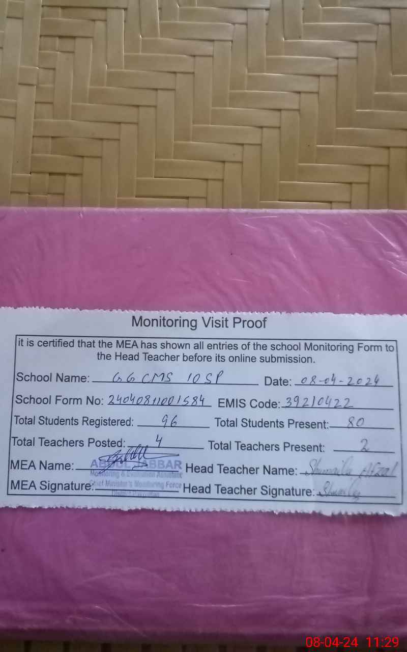 | Certified that this School was Inspected by the Undersigned MEA/DMO Today and the Information Stated Above is as Per Record. | |||||
