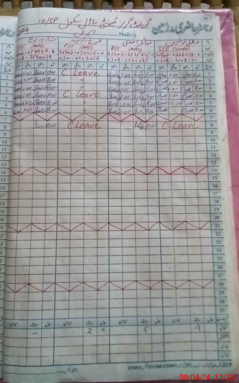 | Name: UZ**** NO**** Designation: (School Headmaster's/Headmistress's) SSE ( Urdu ) Phone/Cell Number: 03**** |