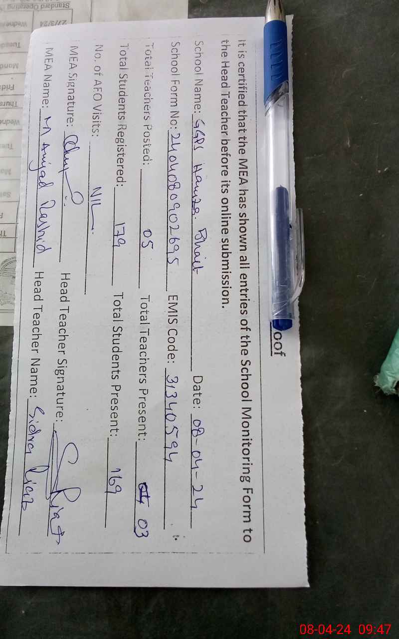 | EMIS Code: 31340594 | Name of School: GGPS HAMZA BHAIT | |||