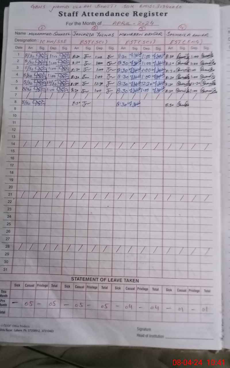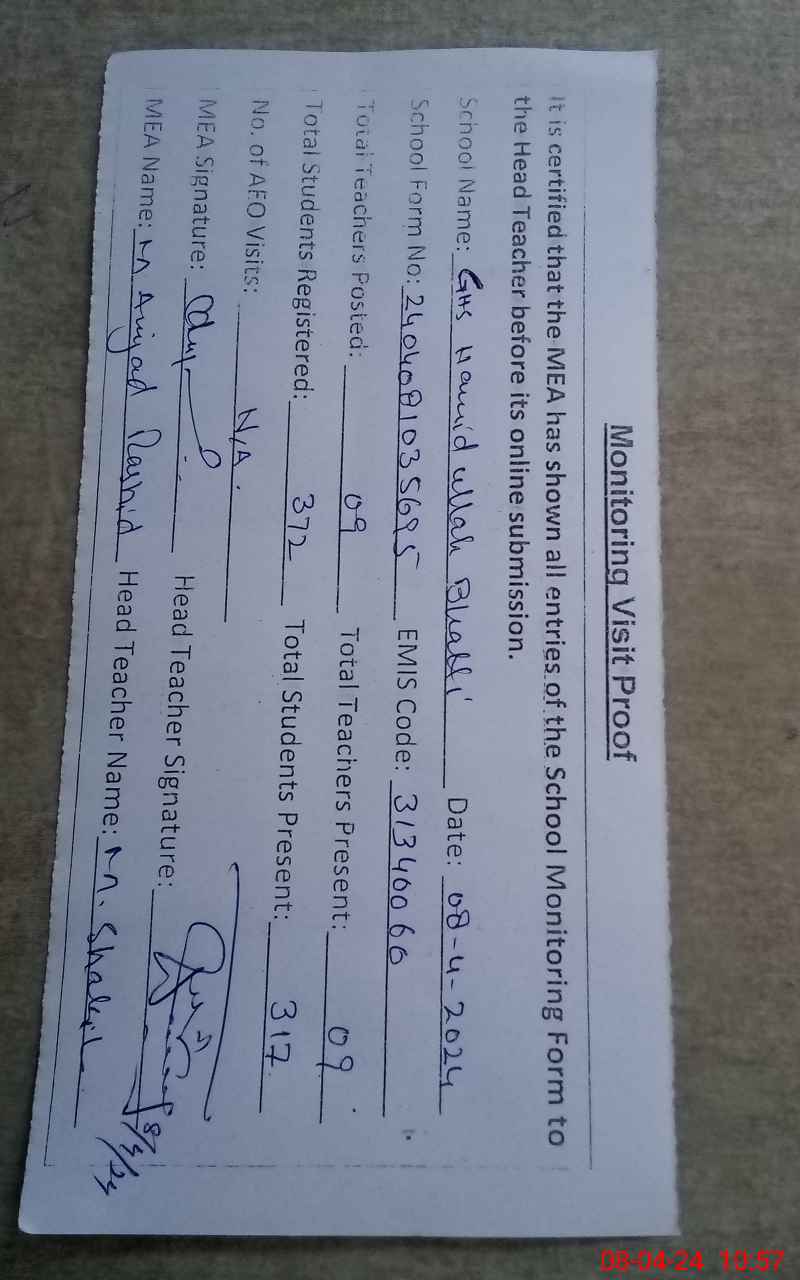 | EMIS Code: 31340060 | Name of School: GHS HAMID ULLAH BHATTI | |||