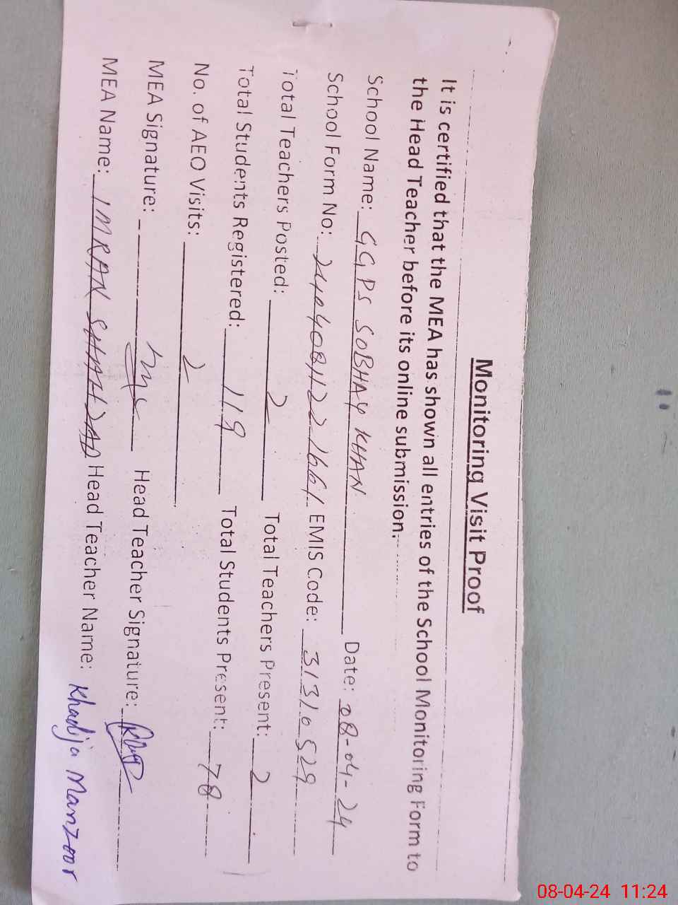 | EMIS Code: 31310529 | Name of School: GGPS SUBAY KHAN | |||