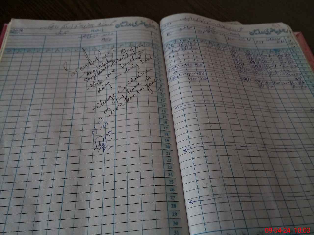 | CNIC | Full Name | Designation | R/C | Absence During Last Calender Month |