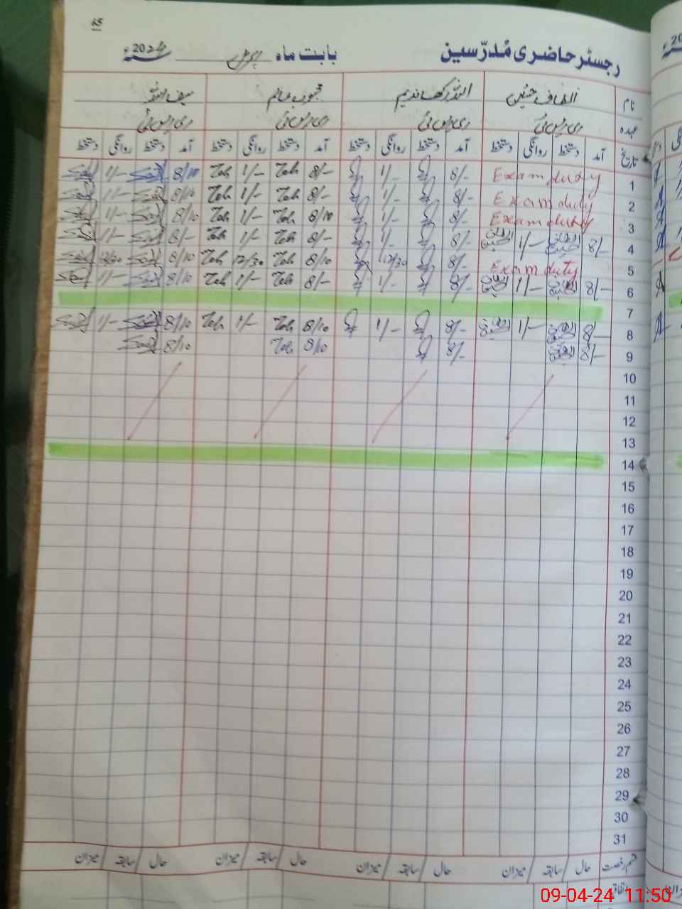 | CNIC | Full Name | Designation | R/C | Absence During Last Calender Month |