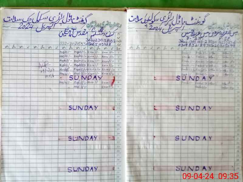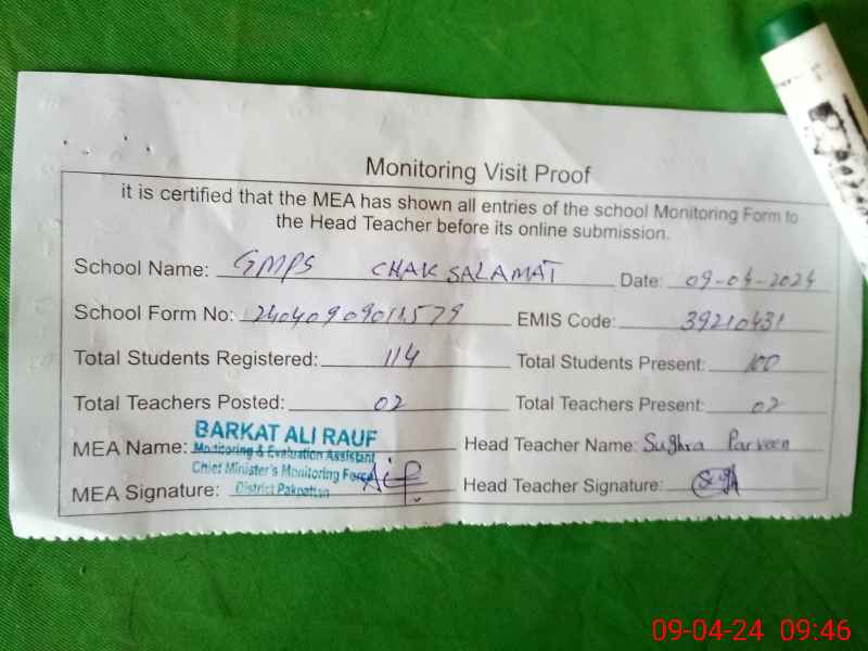 | EMIS Code: 39210431 | Name of School: GMPS CHAK SALAMAT | |||