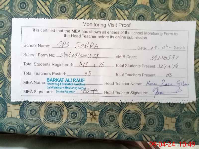 | EMIS Code: 39210587 | Name of School: GPS JORRA | |||