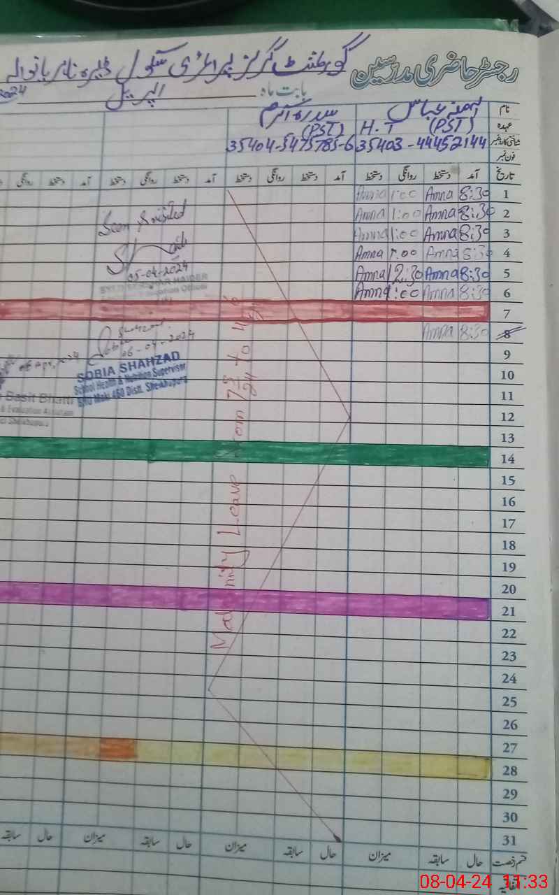 | Name: AM**** AB**** Designation: (School Headmaster's/Headmistress's) PST Phone/Cell Number: 03**** |