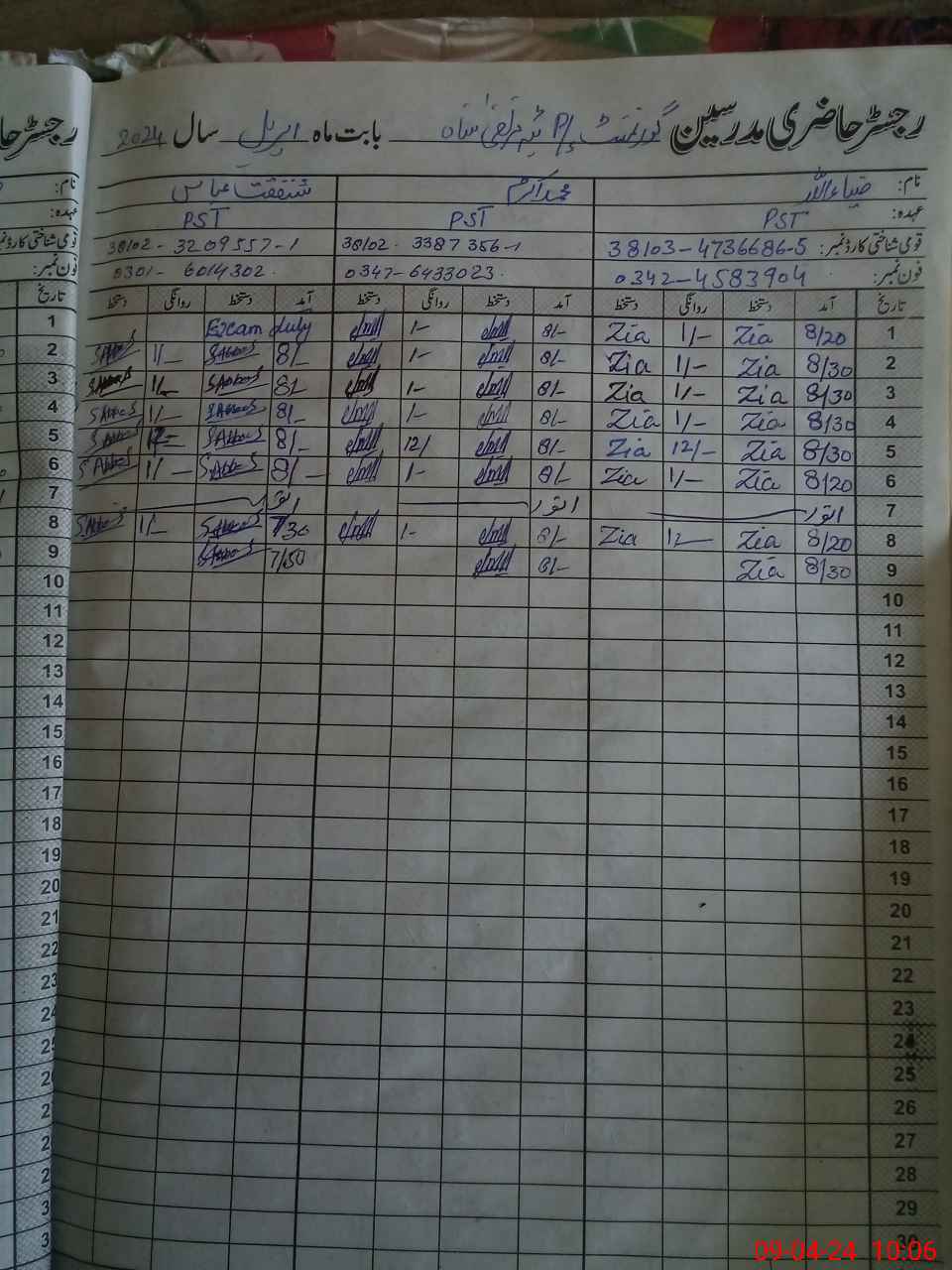 | Name: Sh**** Ab**** Designation: (School Headmaster's/Headmistress's) PST Phone/Cell Number: 03**** |