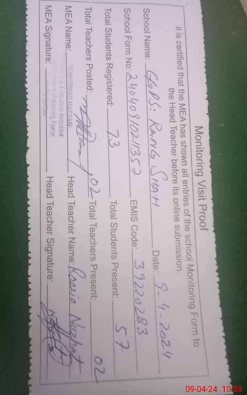 | EMIS Code: 39220283 | Name of School: GGPS RANG SHAH | |||